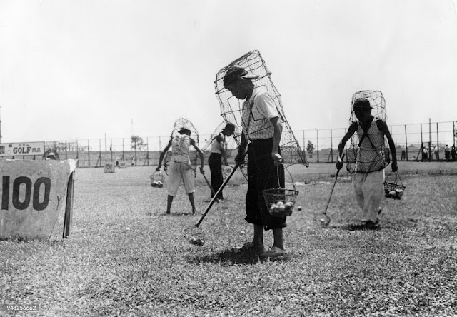 This snapshot of post-war Japan highlights a society in rapid transition. After years of hardship, the country was rebuilding its economy and opening itself more to Western influences, with golf emerging as a fashionable pastime among the growing middle class. Driving ranges multiplied in busy cities, offering a symbol of modern leisure, yet behind this new luxury were workers performing one of the more grueling and overlooked jobs of the era. Their presence was as necessary as it was precarious, a reminder that modernization did not erase the need for human labor.