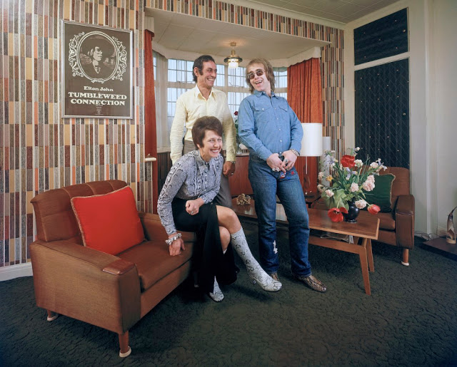 Here are some photographs of Elton John with his mother Sheila and stepfather Fred Fairebrother at their apartment in London, 1971.