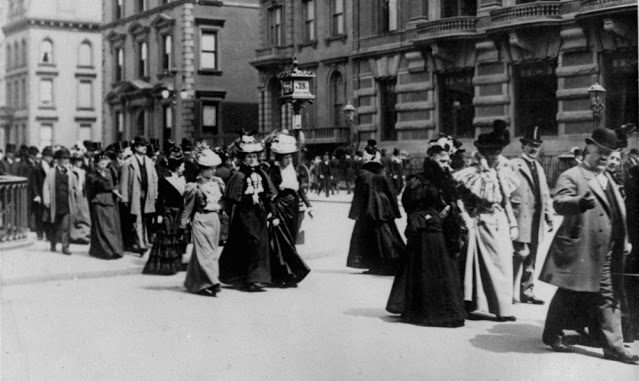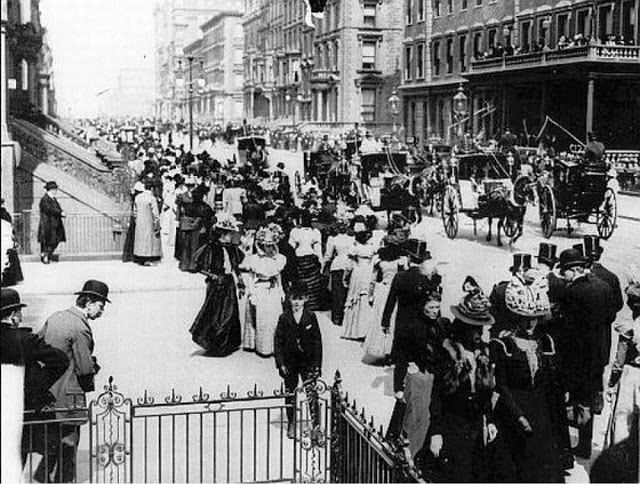 The tradition of the Easter Parade on Fifth Avenue continues in the 21st century and is no longer an aristocratic event, but one open to anyone wishing to show off their sense of style (or lack of it). Here are some images of the parade from the late 19th century: