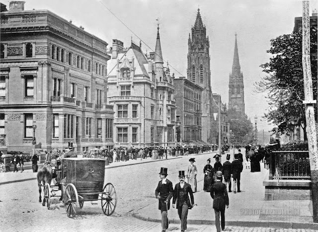 By 1879 the Easter Parade was officially taking place on Fifth Avenue according to The New York Times. The newspaper on April 14, 1879 commented  “that Fifth Avenue was crowded with promenaders” and “Spring bonnets were worn by every lady promenader.”