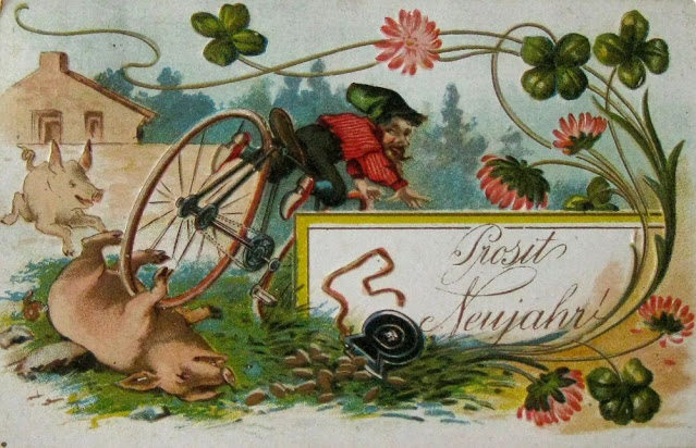 Pig decorations and illustrations on good luck and best wishes cards are common in Germany. This is especially true around New Year.