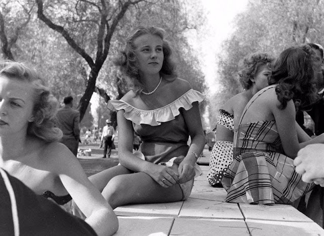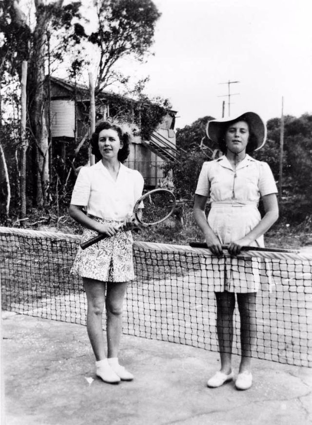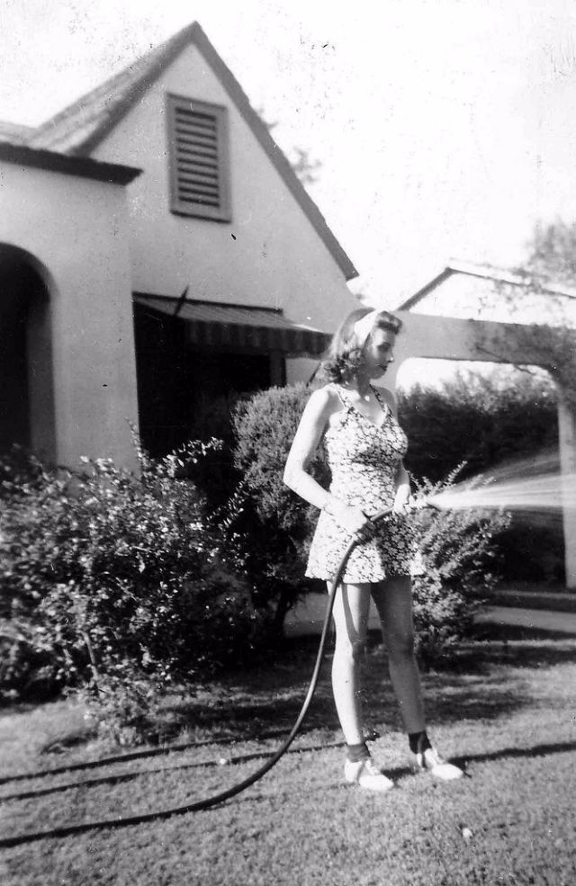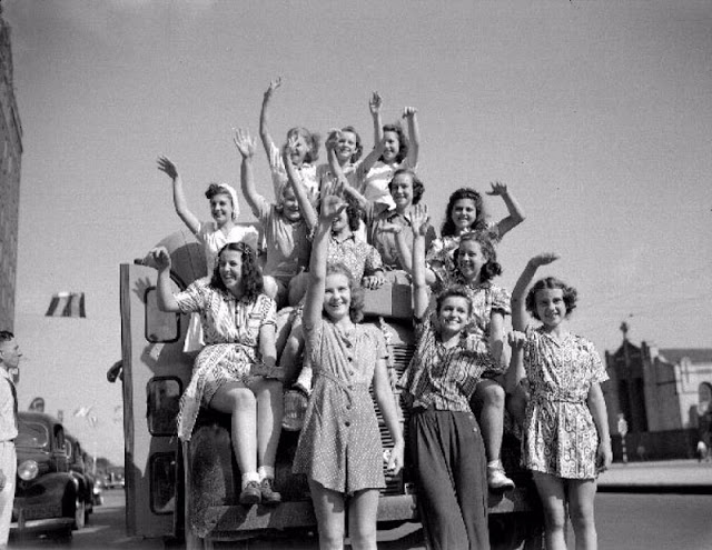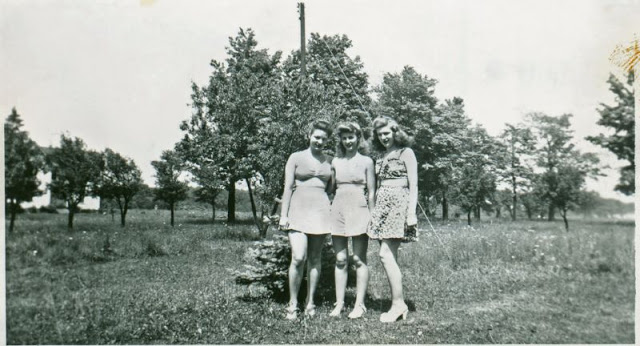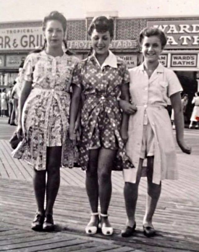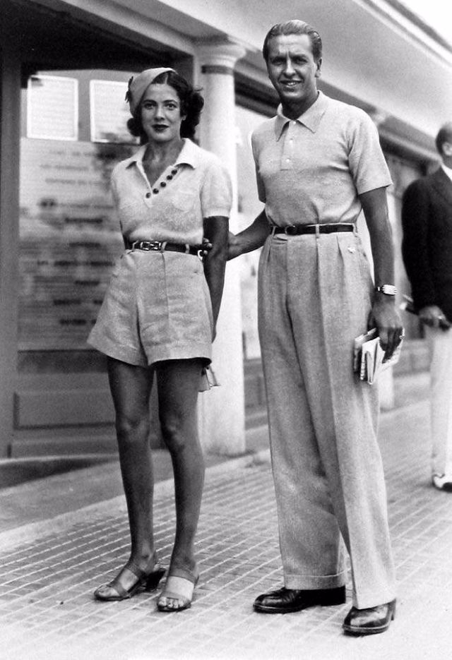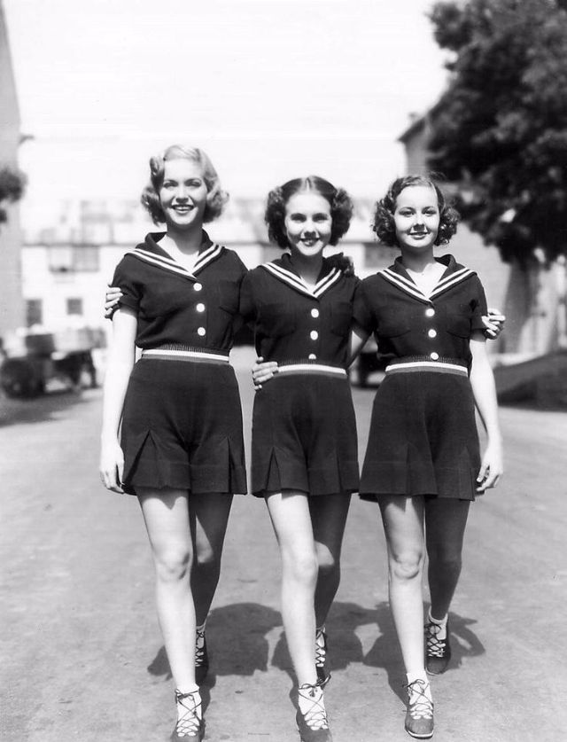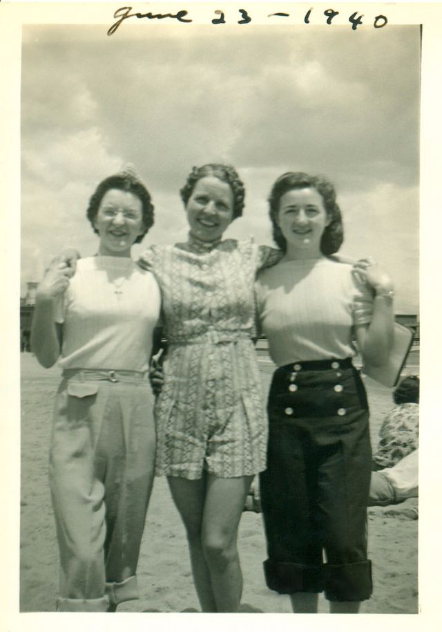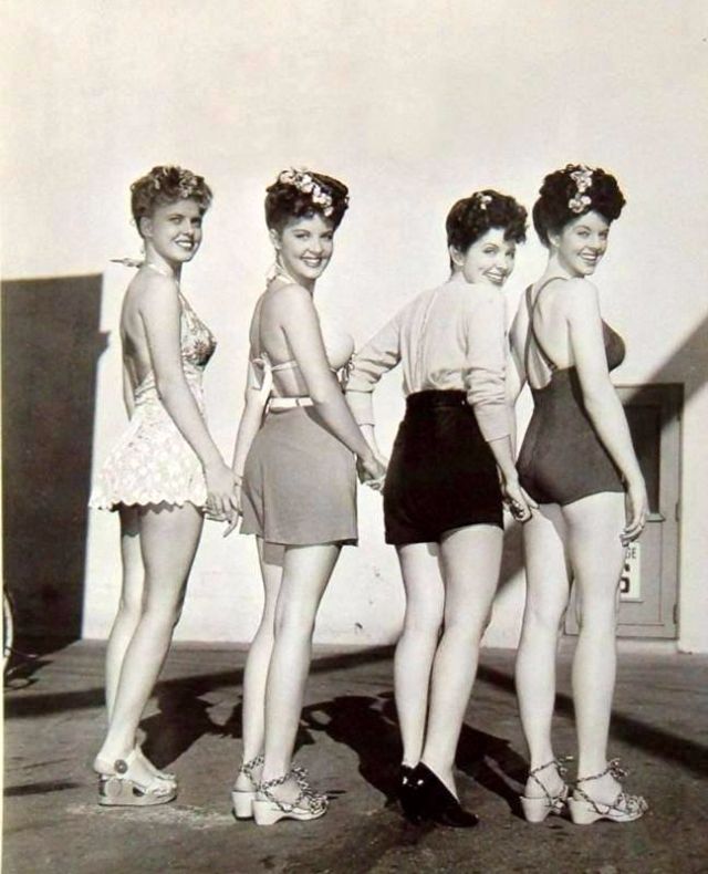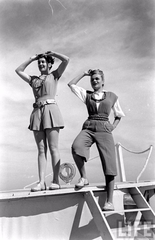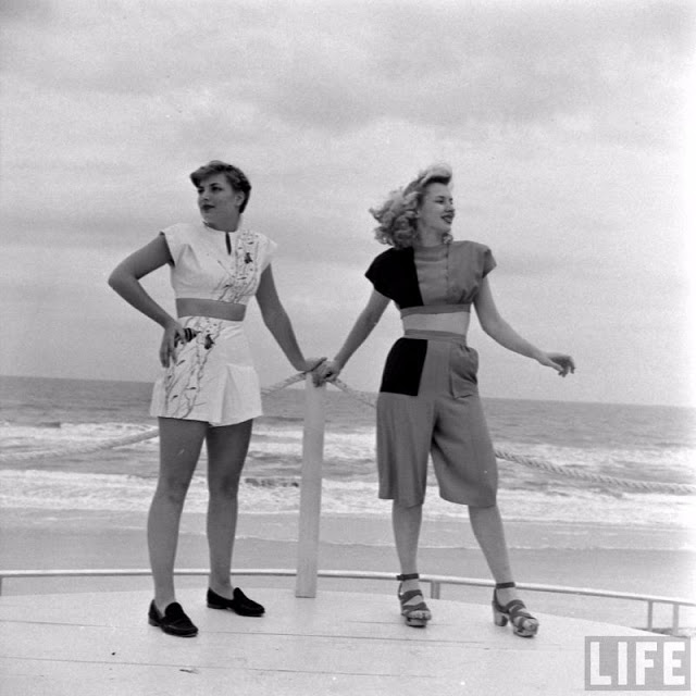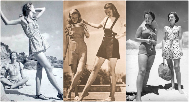A playsuit was a one-piece romper. The top resembled a button-down blouse that would come in at the waist and extend into shorts. Teens and grown women during the 1940s wore what were actually called playsuits.
