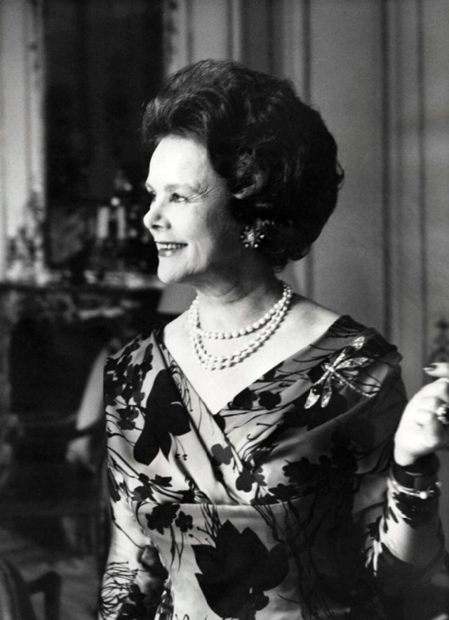 At the wedding ball in 1960 for her son Antony Armstrong-Jones (1st Earl of Snowdon) and Princess Margaret, she wore the full emerald parure — tiara, necklace, and earrings — paired with a Victor Stiebel gown. The next day (wedding day), she wore the large emerald dragonfly brooch.