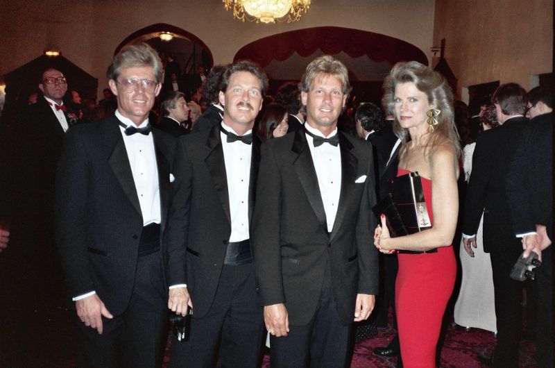 | Alan Light, Rick Best and Todd Morrow pose with Candice Bergen in the lobby of the Shrine Auditorium after the conclusion of the telecast of the 60th Annual Academy Awards, April 11, 1988 |