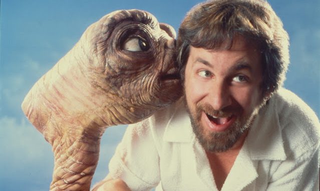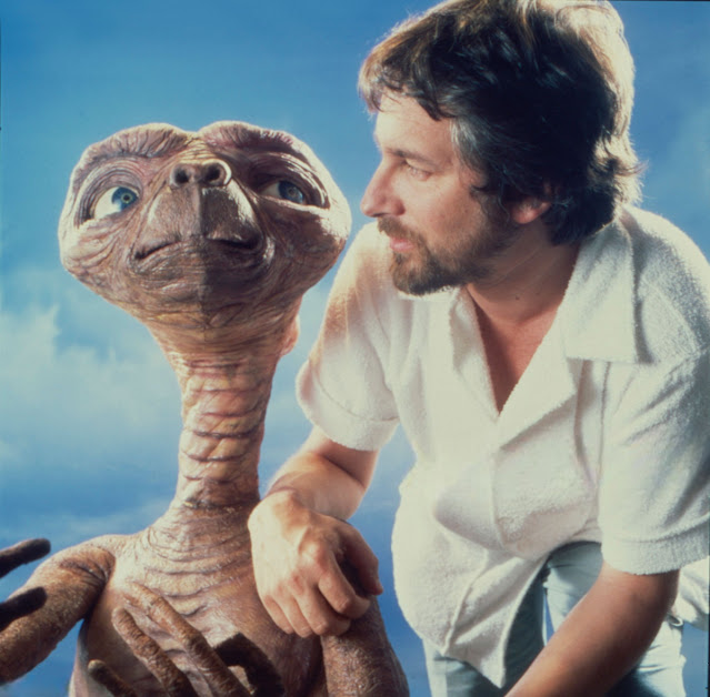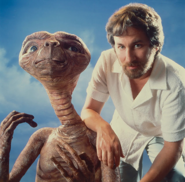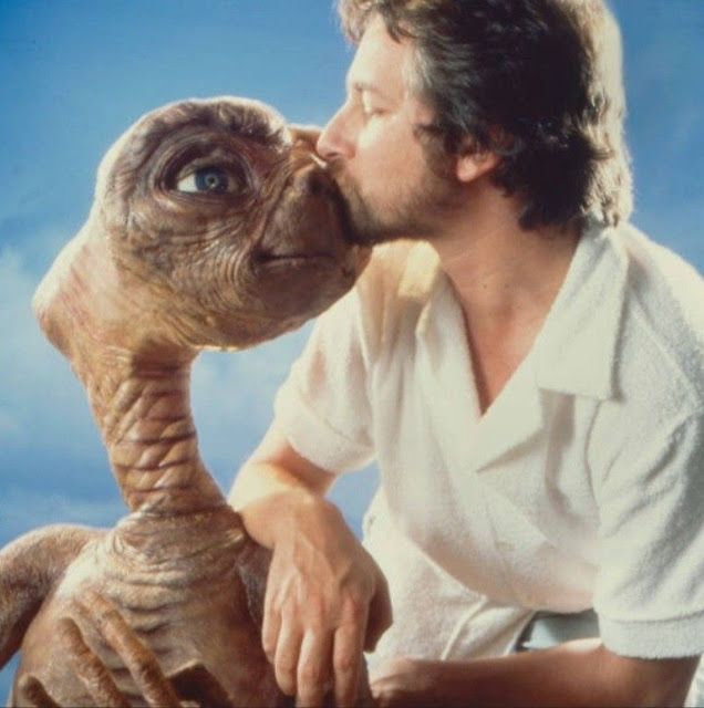 Here are images of Steven Spielberg posing with the E.T. prop during production and promotion in 1982: