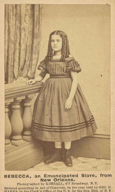 Rosina Downs is not quite seven years old. She is a fair child, with blonde complexion and silky hair. Her father is in the rebel army. She has one sister as white as herself, and three brothers who are darker. Her mother, a bright mulatto, lives in New Orleans in a poor hut, and has hard work to support her family.