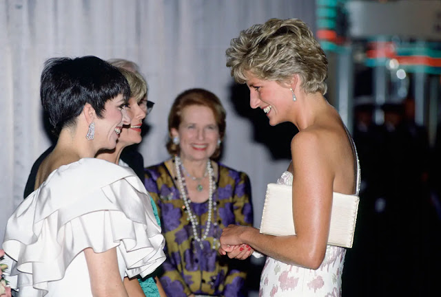 Princess Diana and Liza Minnelli attending the charity film premiere of Stepping Out at the Langham Hilton Hotel on September 20, 1991 in London to raise funds for the Trust for Sick Children in Wales and for the NSPCC.