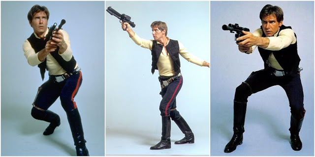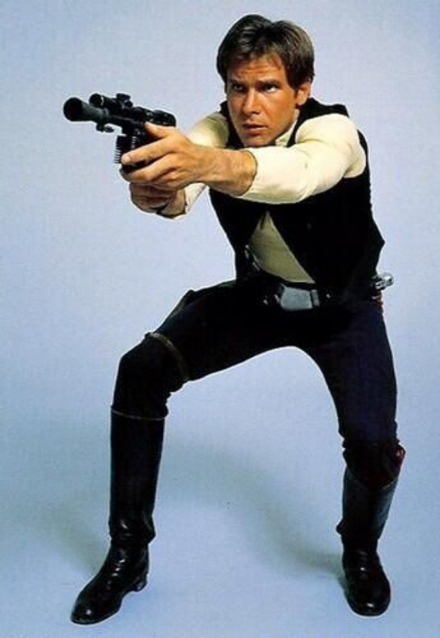 Han Solo is a fictional character in the Star Wars franchise created by George Lucas. The character first appeared in the 1977 film Star Wars portrayed by Harrison Ford.
