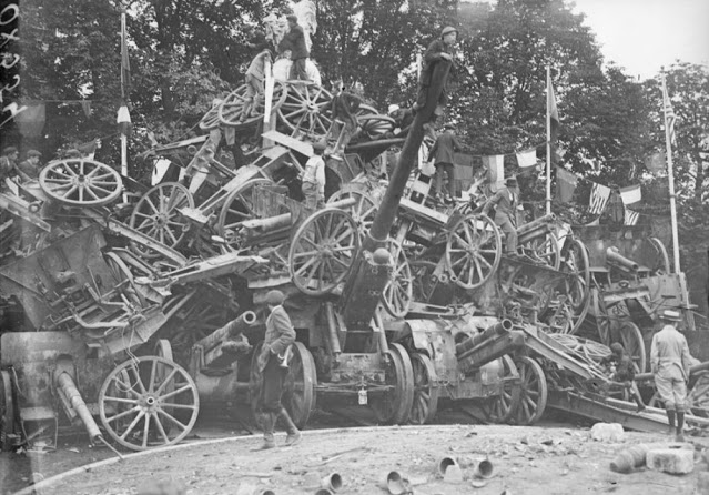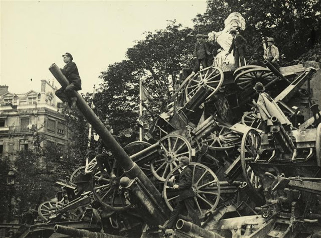Pyramid of captured German cannons on Place de la Concorde in Paris on the eve of the Victory Parade on July 14, 1919.