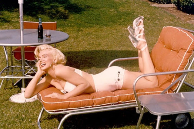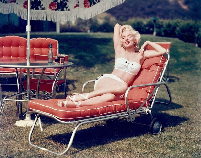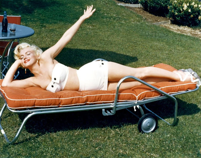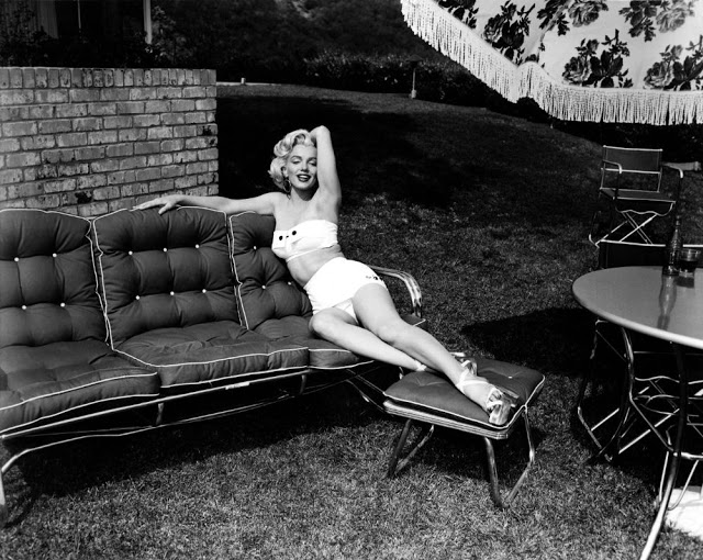 Mischa Pelz was a commercial photographer, who usually shot products. He and Marilyn were friends but had never worked together until he was hired to shoot the lawn furniture with her as the model. This was taken right before the film Gentlemen Prefer Blondes.