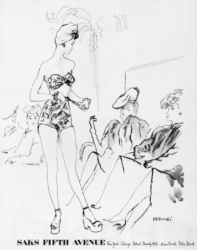 Resort collection at Saks Fifth Avenue, illustrated by René R. Bouché, Vogue, January 1, 1945