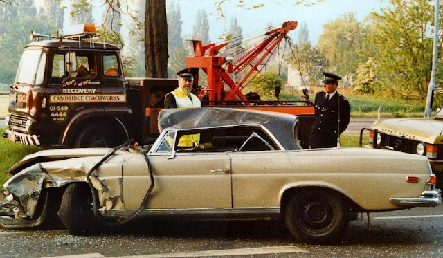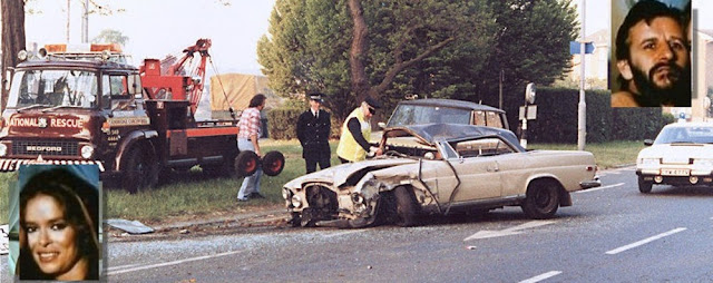 The couple, who were were driving to a party in Surrey, attempted to navigate their way through the fog when the catastrophic incident would occur. As they approached a black-spot at the Robin Hood Roundabout on the A3, a terrifying collision which would completely write off Starr’s white Mercedes, Starr had to swerve, at 60 mph, to avoid hitting an oncoming lorry. His evasive action sent the couple on a fifty-yard somersaulting skid in the process which resulted in his supercar colliding head-on into two lampposts.