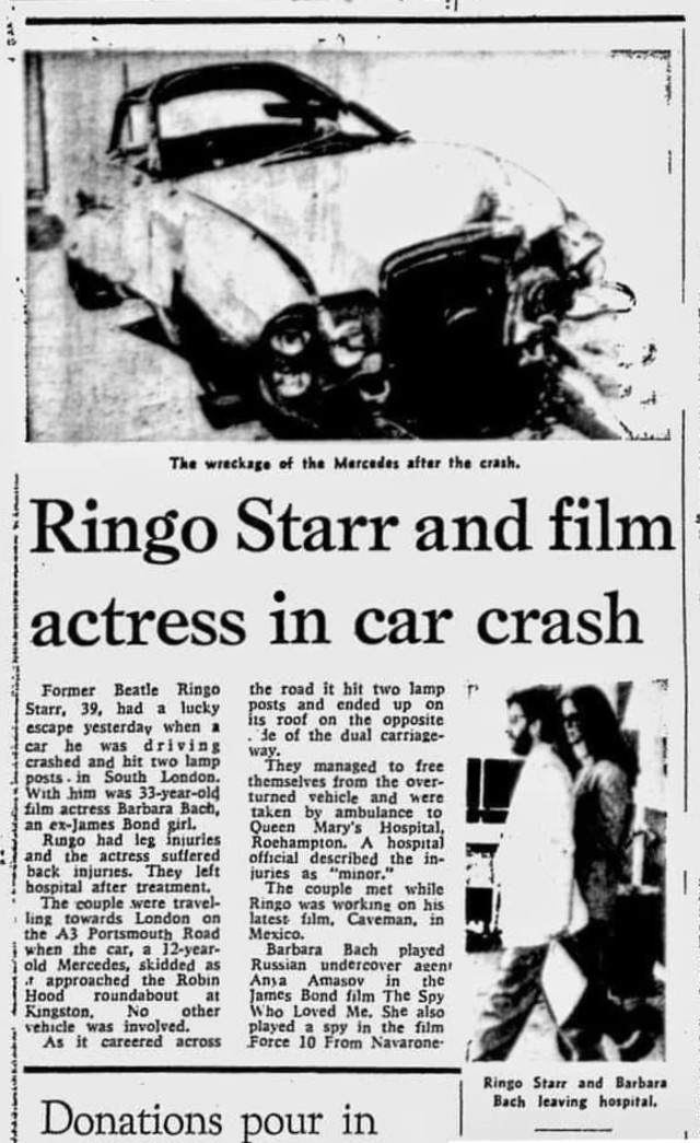 However, despite the leg injury that Ringo suffered, he heroically pulled Barbara safety. Removing her from the car, Starr then comically headed back into his wrecked car to retrieve a pack of cigarettes like a true rockstar. Both walked away from the crash, luckily, with only minor injuries.