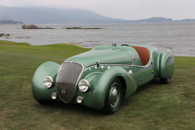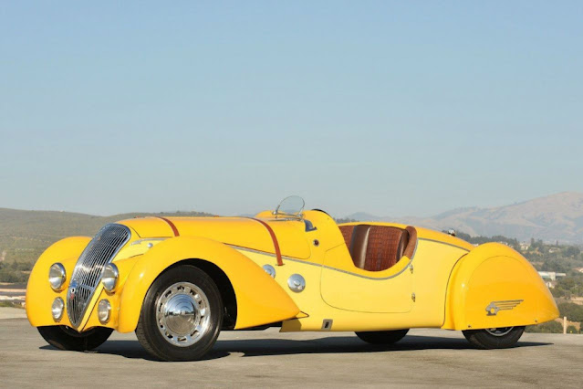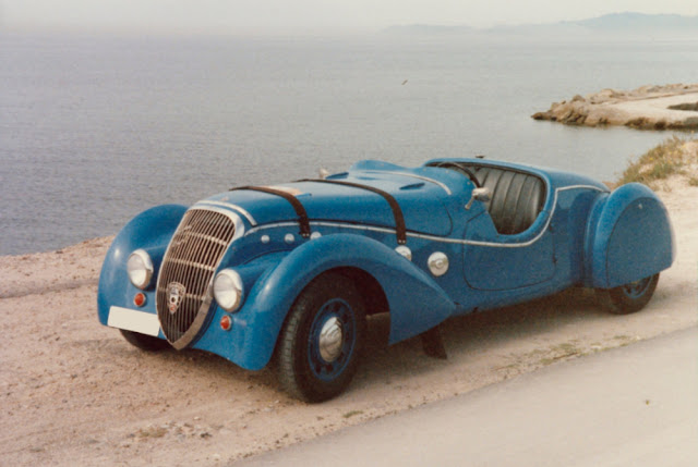 The car’s fabulous shape was drawn by Georges Paulin and fabricated from sheet aluminum by Marcel Pourtout. These two had collaborated on a number of aerodynamic cars including the a Peugeot 301 that debuted at the World’s Fair in Chicago and the Eclipse retracting roof system.