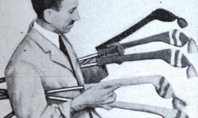 A disable ex-service man at the Soldiers and Sailors Home in Eastbourne, England, has created the latest in head coverings for golf clubs in 1932. They are knitted woolen stockings, with the customary tassel and are especially serviceable for warding off rust attacks. The covers are made by veterans of the home.