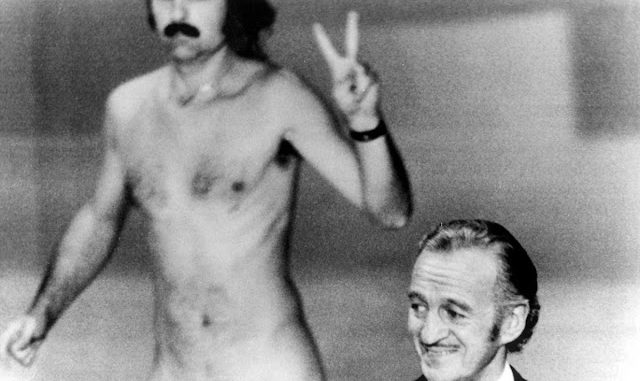 | Opel streaking during the Academy Awards ceremony in 1974, with host David Niven. |