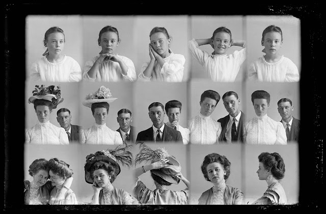 The Penny Picture camera that Hugh Mangum used was ideal for creating inexpensive and accessible novelty portraits. Anywhere from six to twenty-four sitters could be photographed on one negative, reducing cost and labor. As a result, the order of the individual images on a single Penny Picture print reflects the order in which his diverse clientele rotated through the studio, the prints reasonably representing an afternoon or a day’s work for this gregarious photographer.