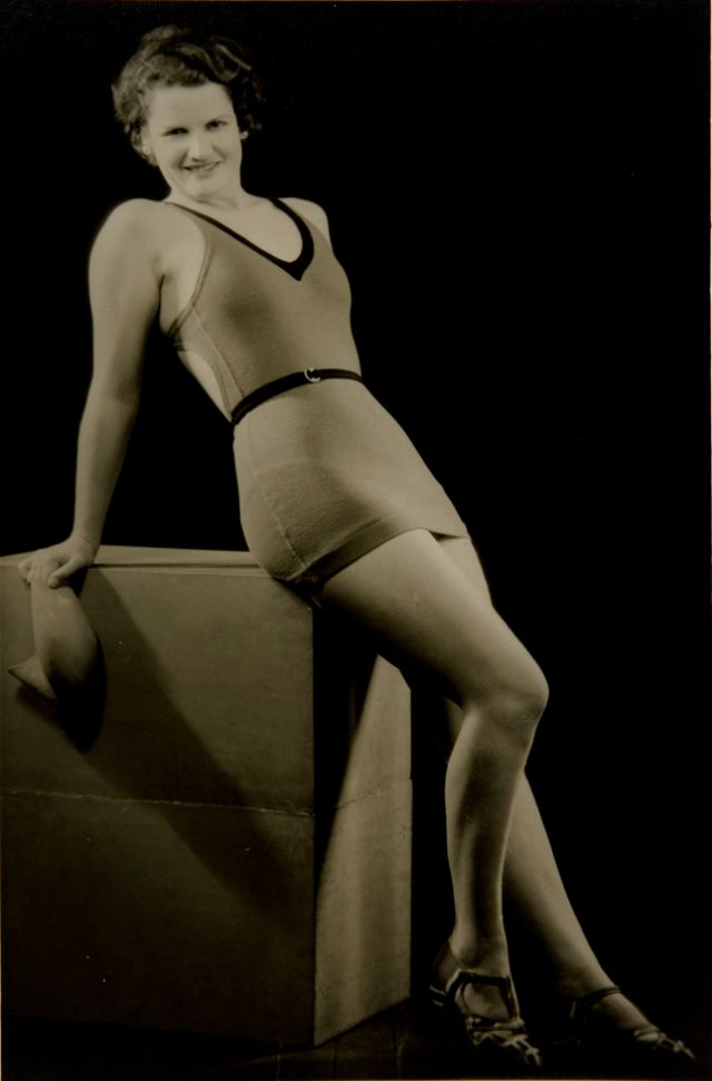 1930s swimsuits were cut to show off more leg and more back skin than ever before. The thin straps also made the shoulders appear broader and more athletic. The new shape became what we know as the modern swimsuit today.