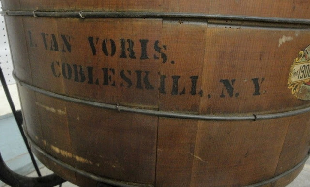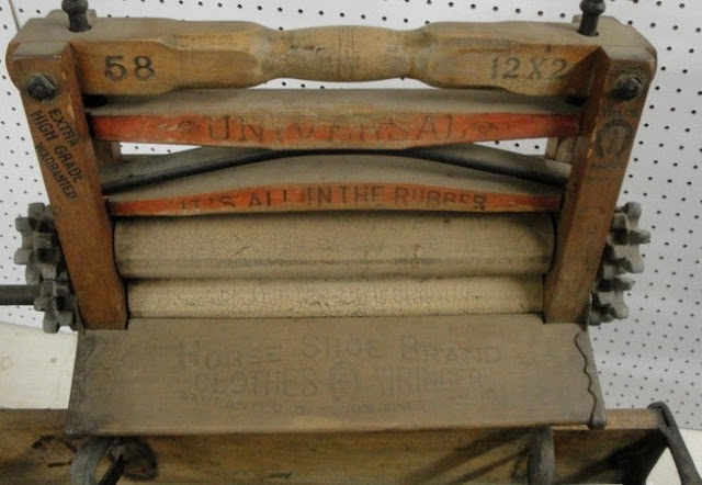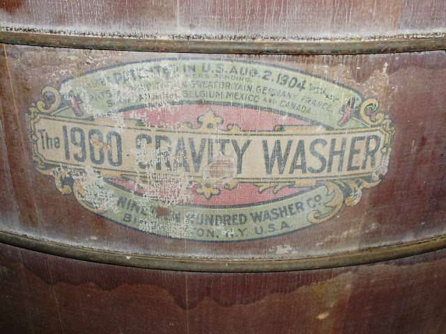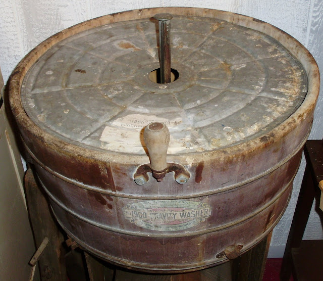 This state of the art washing machine boasted that a woman could do a load in six minutes by simply sitting and turning the crank handle. To encourage sales, mail order catalogs allowed potential buyers to order one at no cost and test it in their homes for a month. The upscale combination washer-dryer model included a hand-operated wringer.