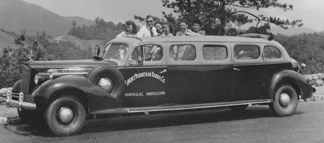 This Packard 90 is one of twelve airport limousines that were manufactured in the early 1940s. It is a Packard 90 that was modified to hold 12 passengers. The car has four-doors on each side, and the top is open and uses a canvas top to seal off the cab. The overall length of the car is 22-ft and the wheelbase is 18-ft. The engine is a 356-cid inline eight cylinder engine.