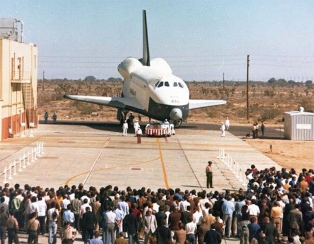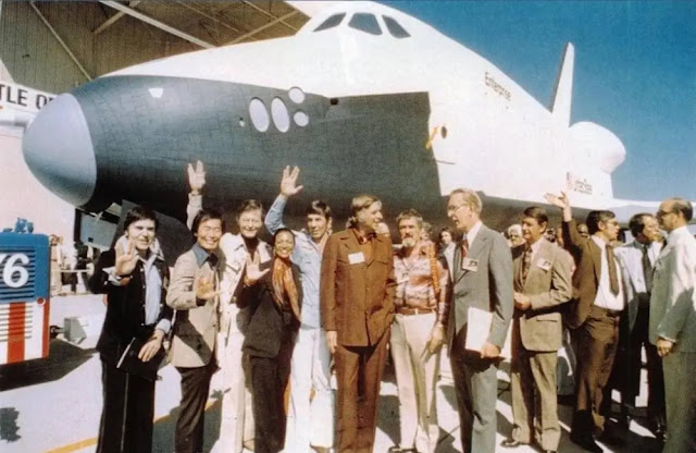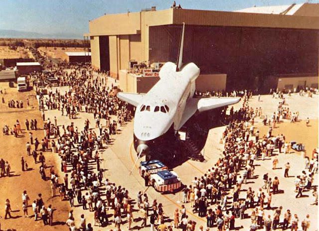When the vehicle made its public debut at Rockwell’s Palmdale, California, facility, on Sept. 17, 1976, it bore the name Enterprise.