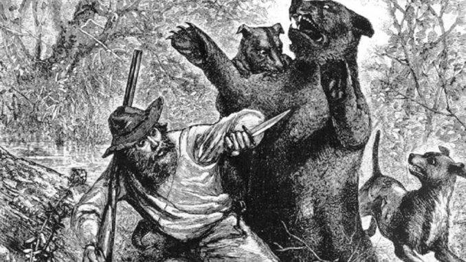 Wikimedia CommonsHugh Glass escaping his grizzly bear.