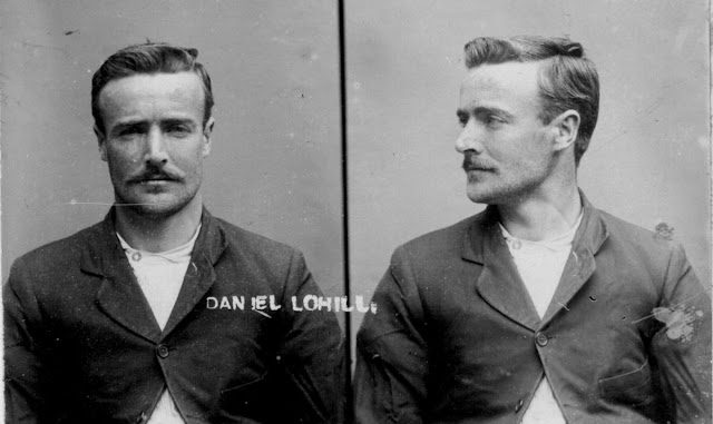 The photograph was actually mislabeled as Daniel ‘Lohill’ at the time it was taken in 1908; the real name of this handsome rogue is Daniel Tohill, and he was convicted of theft in Napier, New Zealand and sentenced to 4 months hard labor on March 2, 1908.