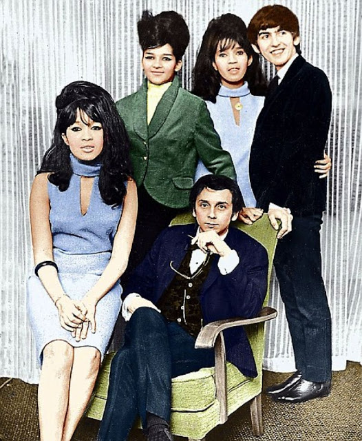 George with the Ronnetts and Phil Spector (and someone else) in 1964.