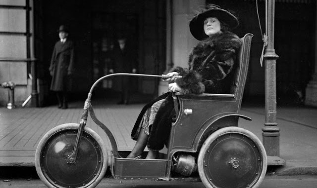 Then came World War I. By the time it ended, over 4,000 amputations had been performed on U.S. soldiers, many of whom came to the Dayton Soldiers’ Home (now called the V.A. Medical Center) for rehabilitation. This prompted the invention of the Custer Invalid Chair, a three-wheel motor vehicle that ran on batteries. Designed to be used by invalids as a sort of self-propelled wheelchair, it would travel 10 to 15 miles before it needed recharging. Custer was granted design patent #D53,891 for his electric motorized wheelchair on October 7, 1919.