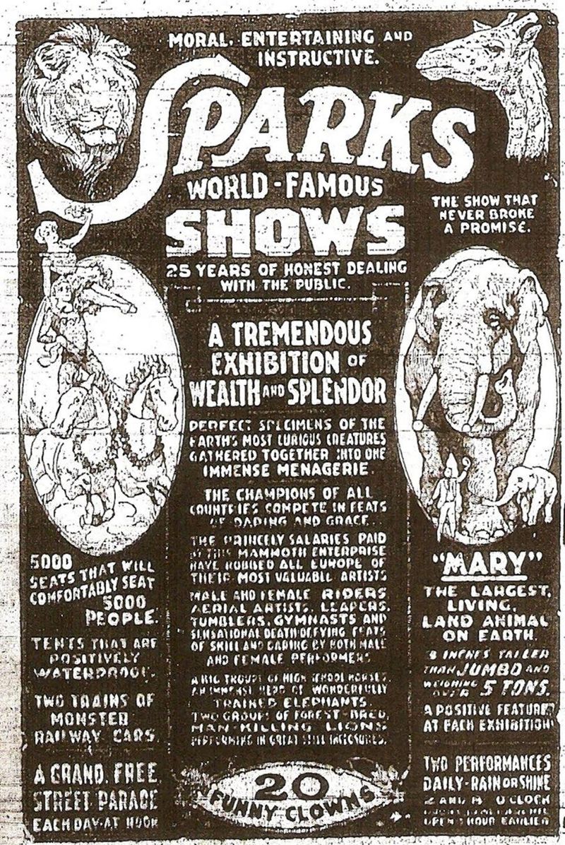 | Sparks World Famous Shows circus poster featuring Mary the Elephant. |