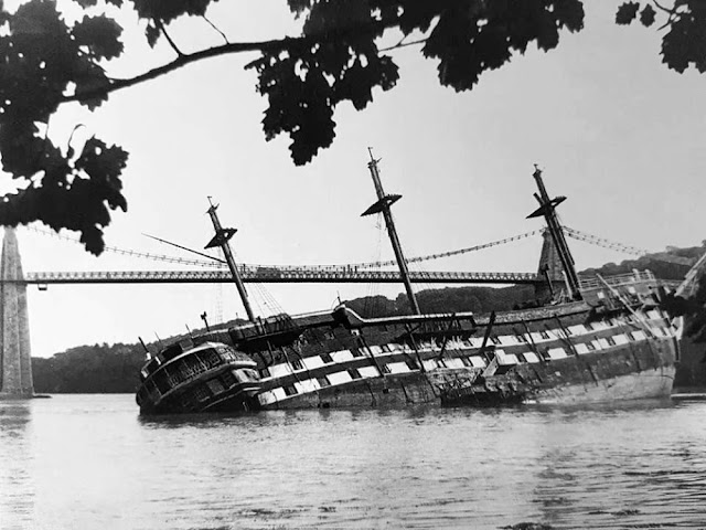 In April 1953, the ship was due for a refit in Birkenhead. On April 14, while being towed from her mooring at Plas Newydd, she ran into trouble in the treacherous waters of the Menai Strait, specifically in a section known as “the Swellies.”