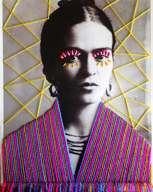 Victoria Villasana is a Mexican textile artist, self described as a “yarn bombastic textile/street artist” whose trademark pieces are portraits embellished with yarn. After studying design at ITESO University in Mexico, she moved to London where she was inspired by the street art scene. There, she began making embroidery images in the streets, becoming well known in the London street art community for her rebellious femininity and acute cross-cultural imagery.