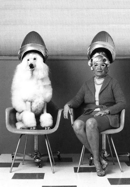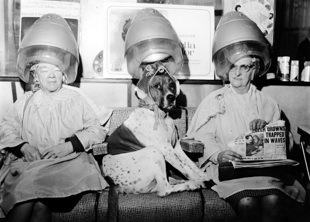 Below are some of funny vintage photographs of women in hair salons with their beloved dogs.