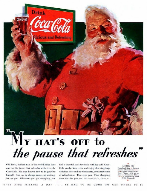 The popular myth that Father Christmas owes his appearance to Coca-Cola – the portly stature, bushy beard and red outfit – is not entirely accurate. Rather, the Santa Claus image you recognize today was the image portrayed by Haddon Sundblom for Santa’s first appearance in Cola advertising in 1931, drawing inspiration from Saint Nicholas’ image.