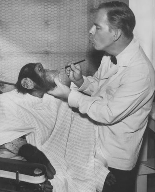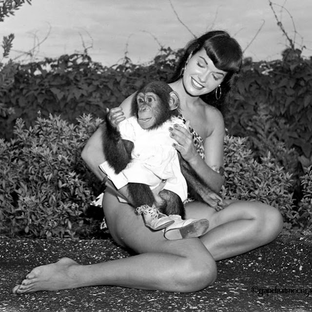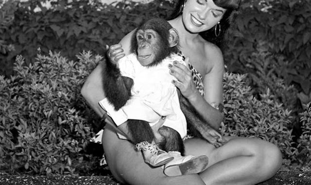 Some of these posed photographs may have been related to whatever production the star was doing at the time. Others were just good photo opportunities. From Bettie Page to Jayne Mansfield, and Gary Cooper, here is a small selection of vintage photographs of celebrities posing with chimps: