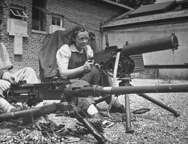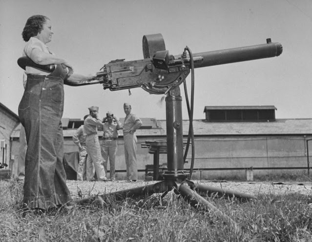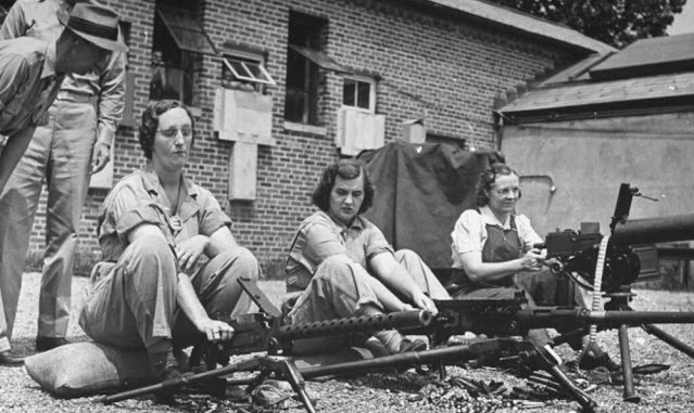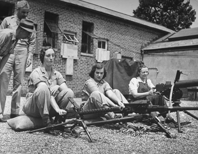 These women come from everywhere. Many have husbands in the Army. Others have husbands who also work at Aberdeen. They wear bright-colored slacks, and their “firing fronts” are a rippling blend of pink. blue and orange, mixed with white and black powder from the guns. They serve on crews of all weapons up to the 90-mm A.A.’s. [anti-aircraft guns]. They handle highly technical instruments. They drive trucks, act as bicycle messengers, swab and clean vehicles. A few of them have even been tested as tank drivers, but that work, with its physical bruises, is still a little too tough for them.