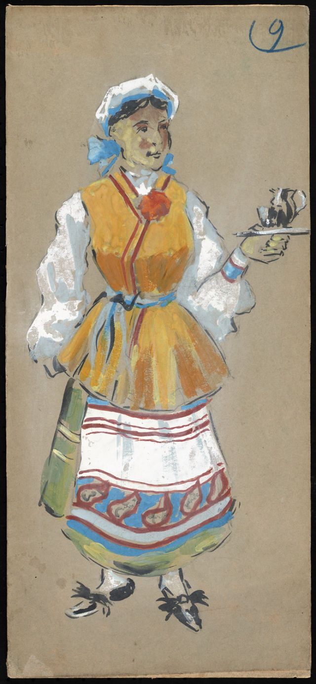Here is a set of vintage photos that show costume designs for the opera Pane altrui.