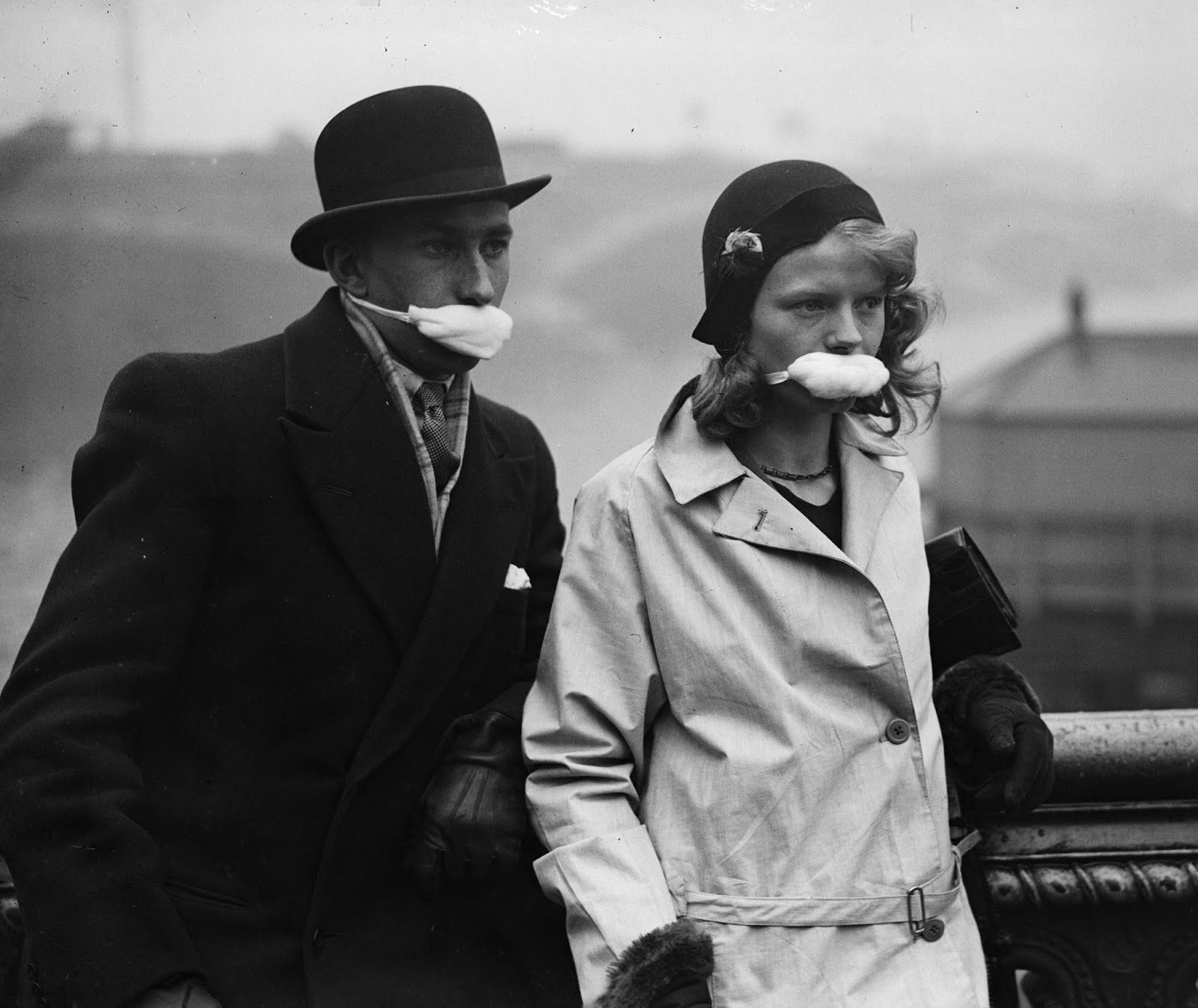 In 1932, doctors around London advised citizens to wear masks over their mouths in order to combat the spread of the flu. After coming to the understanding that influenza ‘germs’ were spreading from the mouth by speaking and coughing, people began sporting this cotton-ball like mouthguard.