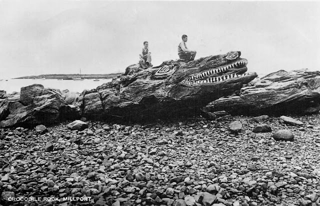 Crocodile Rock is a quirky, beloved landmark on the beach in Millport, the main town on the Isle of Great Cumbrae (often just called Cumbrae) in North Ayrshire, Scotland. It’s a natural rock formation on the shoreline that has been painted to resemble a crocodile, complete with a toothy grin and eyes, and has been delighting visitors for over a century.