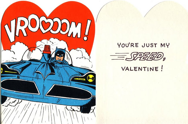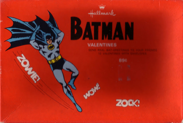 1966 was the debut of the massively popular Batman TV series. However, the show debuted so early in the year that there was no time to do any direct tie-ins with the show itself, so the licensed Valentine’s Day products were all just using art inspired by the comic book itself.