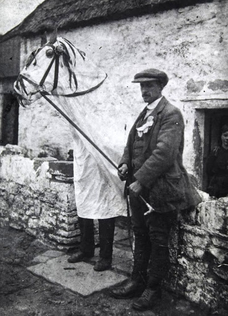 The tradition entails the use of an eponymous hobby horse which is made from a horse’s skull mounted on a pole and carried by an individual hidden under a sackcloth. It represents a regional variation of a “hooded animal” tradition that appears in various forms throughout Great Britain.