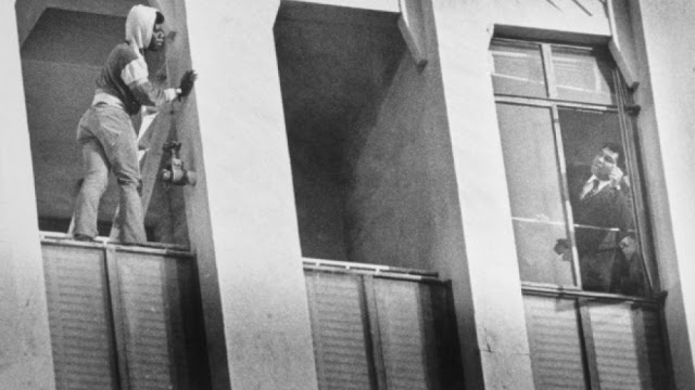And then, in what must have seemed like a dream to the man on the ledge, Muhammad Ali appeared at a nearby window.
