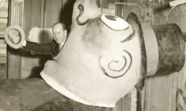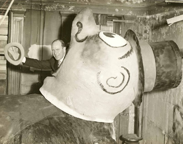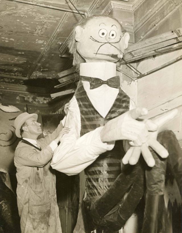 In 1928, he designed, and his protégé Bil Baird built tethered helium-filled balloons up to 125 feet long, resembling animals, for the New York institution of Macy’s department store. This work involved a number of puppetry-related principles. These creations were featured in the store’s Thanksgiving Day parade. In 1935, he undertook the puppet-related work of designing Macy’s elaborate animated window display, which was shown between Thanksgiving and Christmas.