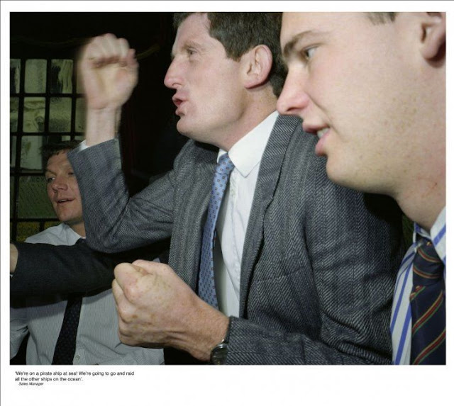 These vintage photographs were taken by photographer Anna Fox in dozens of different offices, making up a snapshot of the way Britain worked during the era of Thatcher. The images are from her 1987 photo series “Work Stations,” a commissioned project meant to convey the aggressive nature of office culture in Britain at the time. Each photo depicts crowded, suited chaos, and is accompanied by a snarky — and sometimes unsettling — snippet showcasing the rally-cry word choice of salesmen.